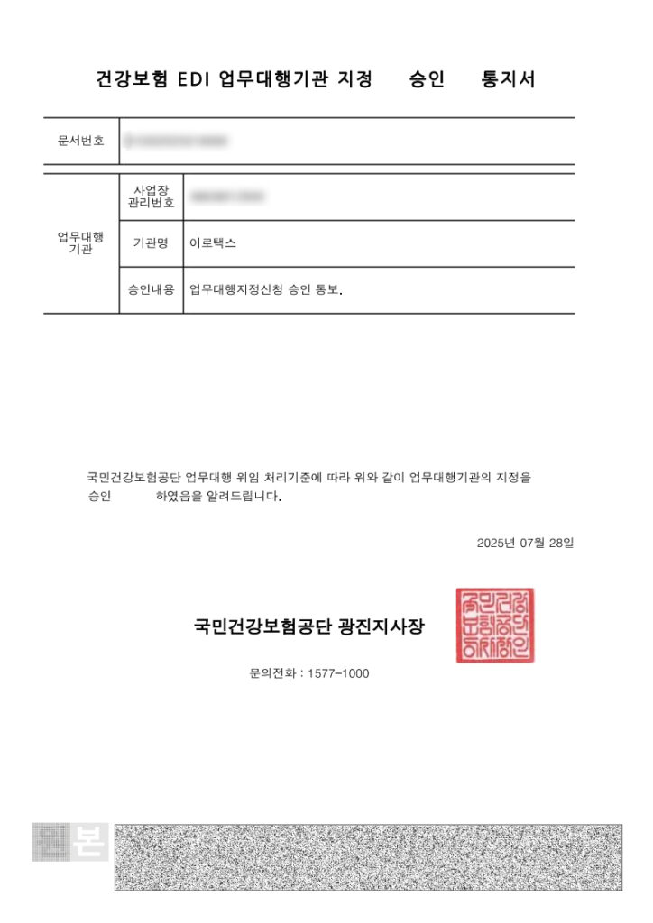 ▲ 국민건강보험공단, 국민연금공단 업무대행기관 승인통지서