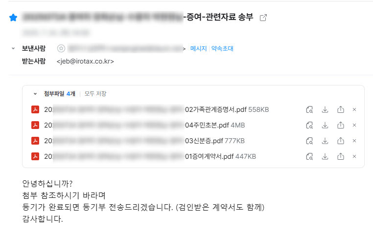 ▲ 법무사님과의 실제 메일, 감정평가법인과의 실제 카톡 대화