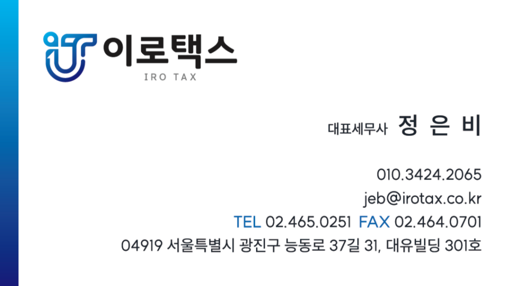안녕하세요. 이로택스의 대표세무사 정은비입니다.