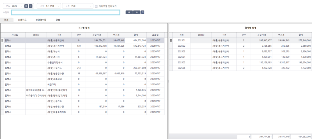 현재 타사의 프로그램을 이용하여 사업자의 월별 매출 및 매입을 체계적으로 취합하여 분석하며 보고하고 있습니다.