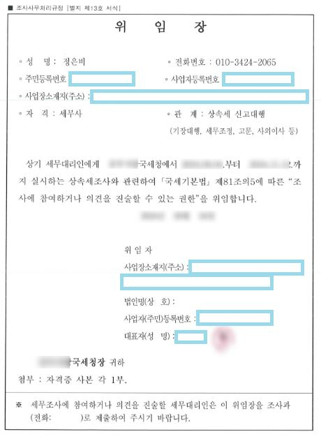 ▲ 국세청조사 선임시 제출하는 위임장