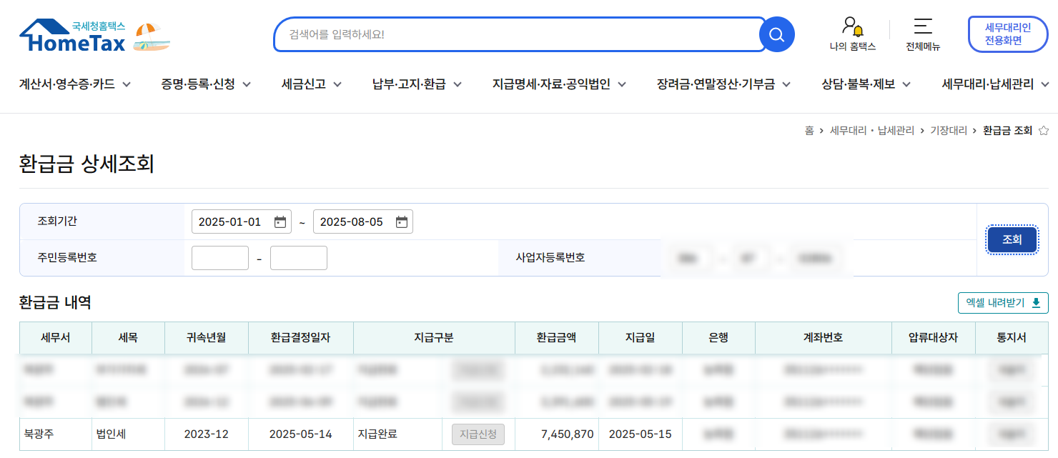 ▲ 실제 경정청구 완료 사례